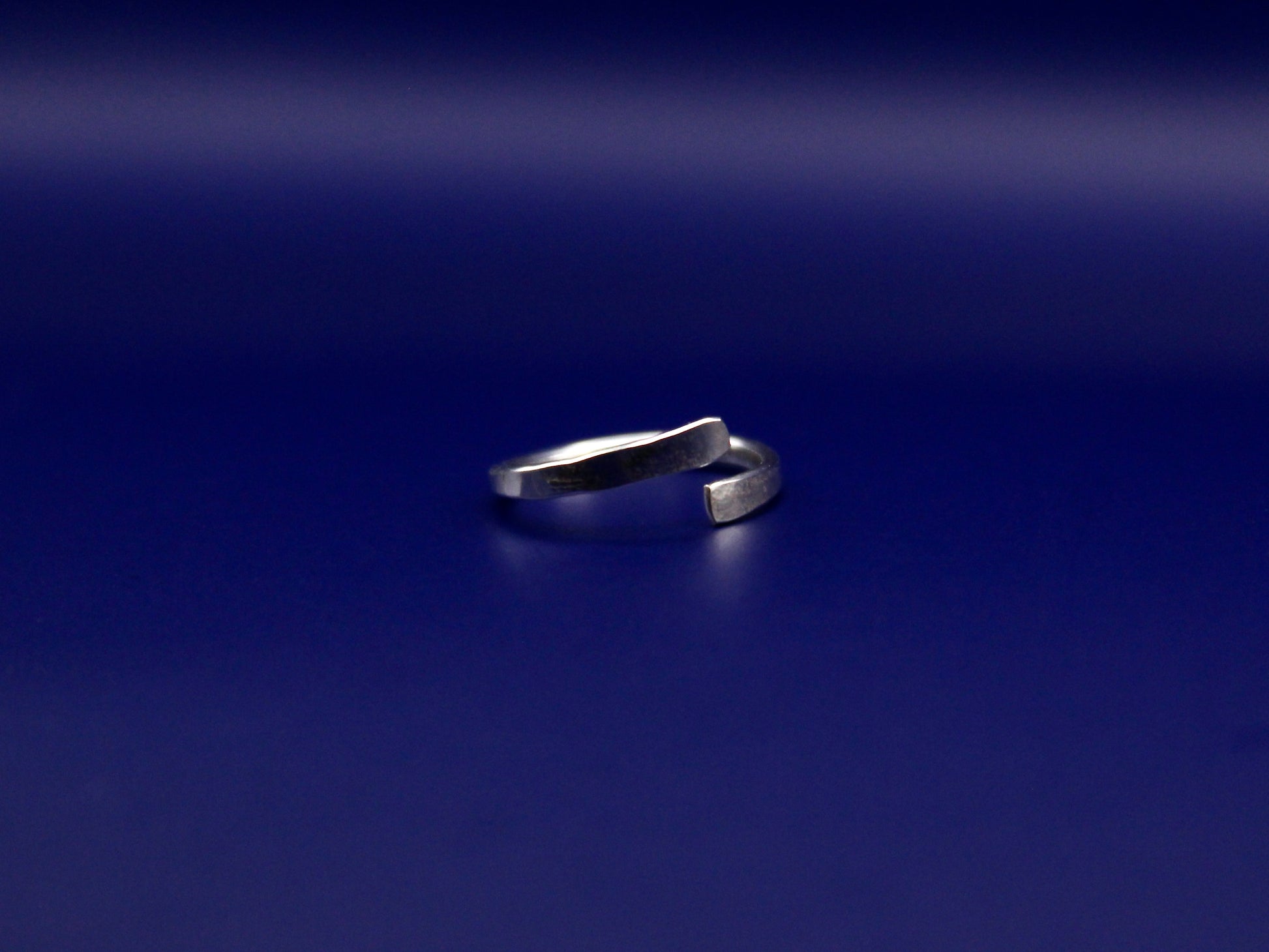 An open band split at the front. Forged in silver, made to hold its ground.